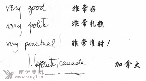 外賓給南運(yùn)集團(tuán)駕駛員的感謝留言