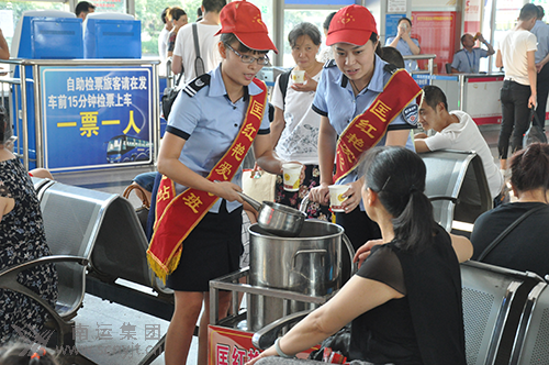 盛夏時(shí)節(jié),恰值每年暑運(yùn)高峰,在南充汽車客運(yùn)站內(nèi),數(shù)千旅客川流不息,奔波于各自的行程中。為做好旅客乘候車過(guò)程中站務(wù)服務(wù)工作,南充汽車客運(yùn)站組織“匡紅艷愛(ài)心班”自愿者服務(wù)隊(duì)員,利用業(yè)余時(shí)間熬煮綠豆南瓜湯,堅(jiān)持每天送到候車大廳、售票大廳,送到每一位需要的旅客手中。她們用愛(ài)心為候車的旅客送上了一絲絲清涼,一些旅客見(jiàn)此情景深受感動(dòng),一位趕乘蓬溪班車的旅客在連續(xù)喝了三杯后感慨地說(shuō)到“沒(méi)想到你們做得這么好,在其他地方我真還沒(méi)有見(jiàn)到過(guò)”。并問(wèn)道“你們是每天都送綠豆湯嗎”?愛(ài)心班的姐妹們回答到:“在夏日伏天中我們每天都要給旅客送到現(xiàn)場(chǎng),歡迎你下次來(lái)站飲用”。這位旅客連聲稱贊地說(shuō)“謝謝你們,有時(shí)間我一定在網(wǎng)上宣傳你們”!安挥茫灰銈儩M意就是對(duì)我們最好的肯定”。為旅客在候車的時(shí)候解除暑熱,帶來(lái)涼意,是愛(ài)心班姐妹們的心愿。當(dāng)志愿者們看到旅客喝著綠豆湯,倦意漸消的情景,她們倍感欣慰。她們知道在這“火熱”的盛夏里,送綠豆湯的小小舉動(dòng),溫暖了旅客們的心。 (張蜀慧 王洪)
