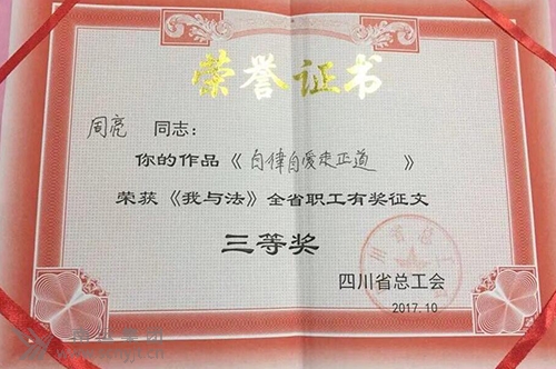 為進(jìn)一步增強(qiáng)廣大職工依法維護(hù)自身合法權(quán)益的知識和意識,推動形成全民學(xué)法、尊法、信法、守法、用法的良好環(huán)境,2017年10月四川省總工會舉辦了“我與法——全省職工有獎?wù)魑摹被顒印?/span>南運(yùn)集團(tuán)旅游分公司工會干事周亮,創(chuàng)作的《自律自愛走正道》一文榮獲“《我與法》全省職工有獎?wù)魑?/span>”三等獎。 (劉紫佳)