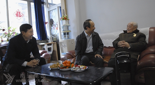 市委常委、市委組織部部長(zhǎng)賈德華(右二) 看望慰問(wèn)南運(yùn)集團(tuán)老紅軍曹守成