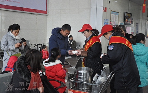 2月16日,狗年農(nóng)歷的大年初一,一場大霧在空中彌漫開來,南充汽車客運站候車大廳內(nèi),行色匆匆的旅客焦急地等待著,他們在期盼著高速公路的開通,以便啟程盡快奔向自己的目的地。 “旅客同志們大家好,歡迎您們來到南充汽車客運站,值此新春佳節(jié)之際,我們?nèi)韭毠ぷ4蠹倚履昕鞓贰⒙猛酒桨、合家幸福!此時此刻,您們?yōu)榱耸聵I(yè)發(fā)展、為了家庭幸福、為了祖國建設(shè)還奔波在旅途上,未能與親人團(tuán)聚,為此,我們客運站特地給大家制作了“愛心”湯圓,這是我們?nèi)韭毠さ男囊,希望能夠帶給您一點點年味的感受。”上午8:30分左右,伴隨著車站播音員的聲音,只見兩名“小紅帽”志愿者推著小車走進(jìn)了候車大廳,她們是“匡紅艷愛心班”的姐妹們,一邊推著車,一邊給候車的旅客舀湯圓。不一會,部分旅客走了過來,有的接過湯圓,滿意的吃著,有的拿出手機(jī),拍攝留念。一位準(zhǔn)備趕乘儀隴馬鞍班車的女旅客激動地對“小紅帽”志愿者說:“我?guī)е『⒔裉觳拍苴s回老家,正好早晨沒有找到飯吃,沒想到還能在車站里吃到免費的湯圓,你們想得太周到了,謝謝你們啦”。“不用謝!這是我們應(yīng)該做的。” 自2009年以來,南充汽車客運站先后開展“送溫暖”、“情滿旅途”和“小紅帽”志愿者服務(wù)活動,堅持在運輸高峰期為旅客送開水、茶飲,特別是每年春運,以 “匡紅艷愛心班”為核心組織車站“小紅帽”服務(wù)隊,她們活躍在候車廳、售票廳、發(fā)班區(qū)、站前廣場,主動為旅客“做一件事、解一份難、助一點力”,開展志愿服務(wù),其中,每年大年初一送湯圓、初六送水餃成了年度靚麗的景色,受到旅客的普遍歡迎,也得到了社會各界的廣泛贊譽。有的旅客說:車站這是圓了夢、甜了心、留了情。 (李曉光 王洪)