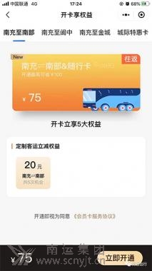 南運(yùn)集團(tuán)定制客運(yùn)南充至閬中、南充至金城、南充至南部線路會(huì)員卡重磅來(lái)襲,還有南運(yùn)出行平臺(tái)通用會(huì)員卡,讓你出行超省,更詳細(xì)的活動(dòng)規(guī)則,快隨小編一起往下看。 2021年的第一份出行特惠! 為給乘客出行提供優(yōu)惠福利,由南運(yùn)出行打造的定制客運(yùn)付費(fèi)會(huì)員產(chǎn)品“南充⇌南部隨行卡”“南充⇌閬中隨行卡”“南充⇌金城隨行卡”于1月1日正式上線! 什么是“隨行卡”?簡(jiǎn)單來(lái)說(shuō),就是可以一次購(gòu)買享多次出行優(yōu)惠。優(yōu)惠力度有多大?購(gòu)卡后購(gòu)票5折優(yōu)惠!可享5次!開(kāi)卡最高可省150元! 活動(dòng)時(shí)間 2021年1月1日—2021年1月31日(31天) 數(shù)量有限,先到先得! 活動(dòng)規(guī)則 1.您選擇所需的定制客運(yùn)線路會(huì)員卡并完成支付后,系統(tǒng)將自動(dòng)派發(fā)卡中包含的所有優(yōu)惠券,您可使用優(yōu)惠券去抵扣應(yīng)付訂單金額; 2.優(yōu)惠券可使用的渠道為:南運(yùn)出行平臺(tái)微信小程序; 3.優(yōu)惠券自到賬后30天有效,每天限用1張優(yōu)惠券,請(qǐng)盡快使用; 4.定制客運(yùn)線路會(huì)員卡僅限南運(yùn)出行指定城際線路可用; 5.優(yōu)惠券僅可“會(huì)員卡購(gòu)買本人”(支付活動(dòng)的登陸賬號(hào)中,常用乘客中的本人)使用,不可替別人購(gòu)買或購(gòu)買后將票轉(zhuǎn)售給他人。 2021年的第二份出行特惠! 由南運(yùn)出行打造的南運(yùn)暢行卡也將于1月1日正式上線!特別一說(shuō),南運(yùn)暢行卡適用于南運(yùn)出行平臺(tái)所有定制客運(yùn)線路(南部至閬中線路除外)! 活動(dòng)時(shí)間 2021年1月1日-2021年1月31日(31天) 數(shù)量有限,先到先得 活動(dòng)規(guī)則 1.您選擇所需的南運(yùn)暢行會(huì)員卡并完成支付后,系統(tǒng)將自動(dòng)派發(fā)卡中包含的所有優(yōu)惠券,您可使用優(yōu)惠券去抵扣應(yīng)付訂單金額; 2.優(yōu)惠券可使用的渠道為:南運(yùn)出行平臺(tái)微信小程序; 3.優(yōu)惠券自到賬后30天有效,每天限用1張優(yōu)惠券,請(qǐng)盡快使用; 4.南運(yùn)暢行卡適用于南運(yùn)出行平臺(tái)所有定制客運(yùn)線路(南部至閬中線路除外)。 5.優(yōu)惠券僅可“會(huì)員卡購(gòu)買本人”(支付活動(dòng)的登陸賬號(hào)中,常用乘客中的本人)使用,不可替別人購(gòu)買或購(gòu)買后將票轉(zhuǎn)售給他人。 活動(dòng)流程 1.識(shí)別下方二維碼進(jìn)入“南運(yùn)出行”小程序