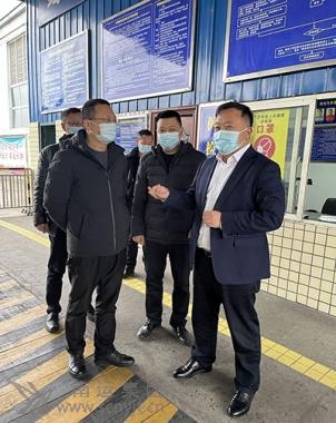 市交通運(yùn)輸局副局長(zhǎng)馬七林(左二)檢查南充汽車客運(yùn)站防疫和安全工作。
