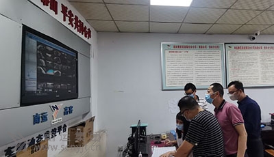 市交通運(yùn)輸局副局長(zhǎng)馬七林(左二)檢查高速客運(yùn)分公司GPS監(jiān)控管理