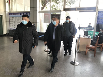 市經(jīng)濟(jì)和信息化局局長(zhǎng)、市春運(yùn)工作領(lǐng)導(dǎo)小組辦公室主任石全華(左二)檢查南充汽車客運(yùn)站春運(yùn)工作。