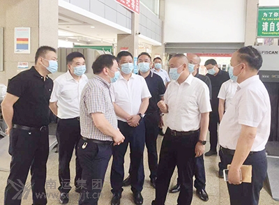 市政府副市長陳有波(右二)到閬中客運中心督導(dǎo)安全和疫情防控工作。