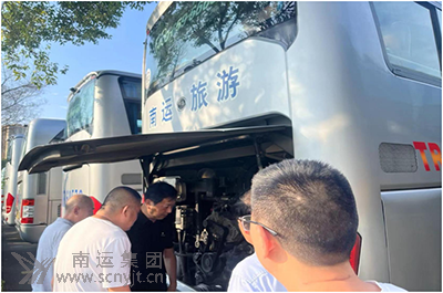 高速客運分公司安全生產(chǎn)第一責(zé)任人岳軍帶隊檢查車輛發(fā)動機及隨車滅火器