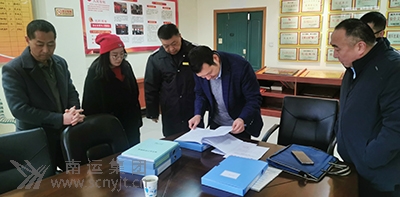 省交通運輸廳安監(jiān)處一級調(diào)研員李天洲(左四)在南充汽車客運站查閱安全檔案資料