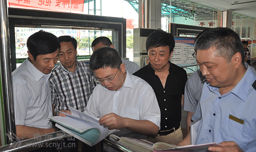 省運(yùn)管局局長王波(左三)在南充汽車客運(yùn)站檢查汛期安全工作 省運(yùn)管局局長王波在南充汽車客運(yùn)站查閱旅客行包安檢資料