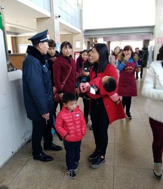 2月25日(正月初十)中午1點,閬中客運(yùn)中心旅客熙熙攘攘、人來人往、十分繁忙,進(jìn)站旅客忙著購票、安檢、檢票乘車。突然,在行包安檢處,一個小男孩哭著找媽媽,急得不行。 安檢工作人員蔡爽、劉浩宇和胡家偉見狀,立即將小男孩帶到值班室。一邊安慰小男孩,給小男孩端來開水,穩(wěn)定情緒;一邊仔細(xì)詢問小男孩姓名、家長手機(jī)號碼等信息。由于小男孩比較緊張,所問信息一個都答不上來。“小男孩的家長肯定非常著急,必須盡快幫助找到他的家長。”劉浩宇見此情形說道,并隨即向安全科長姚波進(jìn)行了報告。姚波了解情況后馬上會同客運(yùn)科通過語音廣播和候車廳電子顯示屏將小男孩尋找媽媽的事情進(jìn)行滾動播出。 十五分鐘后,一手抱小孩的女旅客急匆匆地趕到行包安檢處,小男孩馬上迎上去喊“媽媽、媽媽!”在看到自己走散的孩子后,這位女旅客激動地對車站工作人員說:“謝謝你們,謝謝你們,真是把我急死了!”看到走散的母子團(tuán)聚,客運(yùn)中心的工作人員臉上露出了開心的微笑。 (姚波)