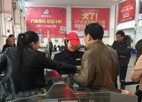 “匡紅艷愛(ài)心班”小紅帽熱情引導(dǎo)旅客自助檢票