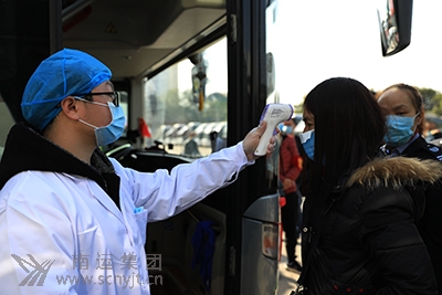 醫(yī)務(wù)人員為返崗務(wù)工人員檢測(cè)體溫