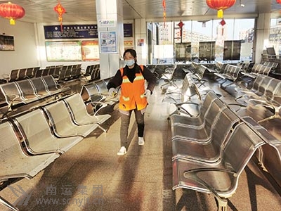 2月17日,農(nóng)歷正月初六,是春節(jié)小長(zhǎng)假的最后一天。藍(lán)天白云,晴空萬(wàn)里,春風(fēng)習(xí)習(xí)?箵粢咔榫偷剡^(guò)年中的冷清春運(yùn)年味仍濃。南充汽車(chē)客運(yùn)站候車(chē)大廳外入口門(mén)廳波瀾起伏的天藍(lán)色陽(yáng)光膜下,寬大氣派的電子顯示屏上滾動(dòng)播放著“全國(guó)道路旅客運(yùn)輸一級(jí)企業(yè)——南運(yùn)集團(tuán)給全市人民和廣大旅客拜年!恭祝新春快樂(lè)、身體健康、萬(wàn)事如意、闔家歡樂(lè)!”“歡迎返鄉(xiāng)過(guò)年的兄弟姐妹平安歸來(lái)!”的紅色大字橫幅特別醒目,歡度佳節(jié)的5個(gè)大紅燈籠和一排排小燈籠高高掛起,讓旅客們感受到濃濃的年味。候車(chē)大廳內(nèi)懸掛著大紅燈籠和大紅中國(guó)結(jié),“關(guān)愛(ài)農(nóng)民工,攜手創(chuàng)繁榮”和“佩戴口罩是阻斷病毒傳播的有效手段”的紅色橫幅在電子顯示屏上不斷播放,使旅客們倍感暖意融融。根據(jù)新冠肺炎疫情防控工作的需要,候車(chē)大廳進(jìn)站口設(shè)置了不銹鋼欄桿通道,改造了站前廣場(chǎng)和車(chē)輛進(jìn)站口,重新構(gòu)建了磚混結(jié)構(gòu)崗?fù)、混泥土座鋼結(jié)構(gòu)圍墻、站徽標(biāo)門(mén)頭柱、隔離活動(dòng)欄桿、固定隔離護(hù)欄,使下客區(qū)旅客統(tǒng)一從新設(shè)置的唯一的出口處出站,使疫情防控和安全管理更加規(guī)范和完善。