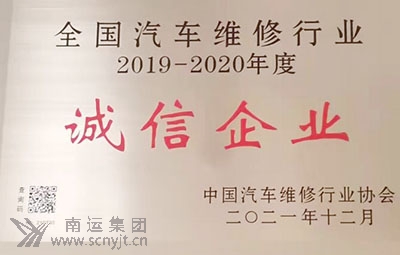 南運集團精誠汽車維修分公司榮獲 “全國汽車維修行業(yè)誠信企業(yè)”