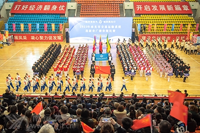 南運集團代表隊高呼口號,精神抖擻地邁步在入場儀式上。