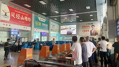 南充汽車客運(yùn)站候車室LED顯示屏播放大會現(xiàn)場直播,吸引旅客駐足觀看。
