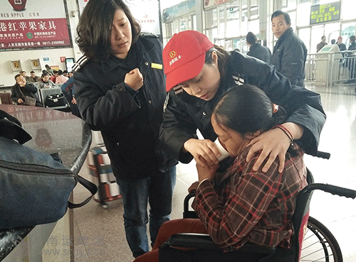 車站咨詢處工作人員胡燕端來熱開水喂她喝下