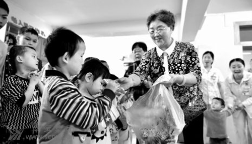 5月26日下午,南運集團“愛心婆婆”葉千秀帶著禮物,來到市兒童福利院,提前陪孩子們過“六一”。今年,是葉婆婆陪孩子們過的第十個兒童節(jié)。 “葉婆婆,謝謝你來看我們!笨吹饺~千秀,孩子們高興不已,圍在葉千秀的身邊,親切地向她問好!皝恚⒆觽,這是我給你們的節(jié)日禮物,祝你們節(jié)日快樂!比~千秀拿出餅干、糖果,一 一分發(fā)給孩子們。隨后,葉千秀又拿出2000元現(xiàn)金,交給福利院工作人員,叮囑工作人員給孩子們買點他們喜歡的玩具。 葉千秀是南運集團一名普通的退休老人,她先后幫助26名大學生完成學業(yè),還資助了1名高中生,兩名初中生。兒童康復中心的孩子需要幫助,她慷慨解囊;老年合唱團沒活動經(jīng)費,她伸出捐助之手。從2007年開始,她每年都會到兒童福利院陪孩子們過節(jié)。16年來,她已捐出58萬元現(xiàn)金。 (摘自2016年5月27日《南充日報》第六版 記者 陸待君)