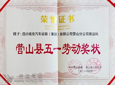 南運集團(tuán)營山分公司客運科榮獲“營山縣五一勞動獎狀”
