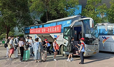 炎炎夏日里,三輛印有“南運(yùn)集團(tuán)”醒目大字,掛著《南充汽車客運(yùn)站校園直通車》鮮紅標(biāo)語的大巴車,整齊的擺放在西華師范大學(xué)校園內(nèi),6名穿著統(tǒng)一工裝,肩披綬帶的工作人員,站立在車旁。他標(biāo)志著,2022年暑期校園直通車正式啟動。 暑假來臨前期,該站及早準(zhǔn)備,組織站務(wù)人員深入校園,開展各種形式的宣傳、告知活動,同時對老師和同學(xué)們預(yù)期乘車情況進(jìn)行摸底排查,為師生們提供現(xiàn)場“客運(yùn)咨詢”服務(wù),積極尋找?guī)熒鷤兂塑囯y、行李轉(zhuǎn)運(yùn)難、打車費(fèi)用高等問題的解決方法,為老師和同學(xué)們開通了一條安全、便捷、溫馨的回家路。 7月7日早上7:30分,第一批直通車走進(jìn)校園,同學(xué)們提著行李箱,在車站工作人員的引導(dǎo)下,排隊有序上車,臉上洋溢著無比輕松的笑容!罢埻瑢W(xué)們帶好隨身物品,注意腳下安全”、“同學(xué)你先上,我給你拿行李箱”、“請戴好口罩,做好自我防護(hù)”……車站工作人員在現(xiàn)場引導(dǎo)、宣傳并積極提供全方位服務(wù)。 “這是我大學(xué)的第一個暑假,不用出校門就能直接去汽車站乘車,太方便了!薄半m然離家千里,但我切身感受到了南充汽車客運(yùn)站像家一樣的親情服務(wù)!钡谝淮巫蓖ㄜ嚪掂l(xiāng)的大學(xué)生陳軍和同學(xué)們一邊高高興興的趕乘直通車,一邊和服務(wù)的車站工作人員說道。家住宜賓市的大學(xué)生孫康俊激動地說;“車站和學(xué)校無縫銜接,讓大家不出校園就坐上回家的汽車,不僅可以減少疫情感染的風(fēng)險,還省去了轉(zhuǎn)車的煩惱,非常方便,特別貼心。”對車站的這一舉措,師生員工們紛紛表示感謝。 (彭慶紅)