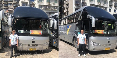 順慶分公司川R82059譚德平(左)和川R79876周永政(右)兩名駕駛員開行“大運(yùn)村——東安湖體育公園主體育場”豪華大巴留影。
