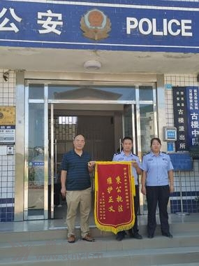 南運(yùn)集團(tuán)西充分公司副經(jīng)理馮興晏(左)給西充縣公安局古樓派出所教導(dǎo)員蒲培全(右二)贈(zèng)送“秉公執(zhí)法 維護(hù)正義”的錦旗。