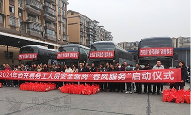 回家時歸心似箭,離家時依依不舍,車站的站臺見證了多少的聚散離別,也承載了太多的希望和夢想。春節(jié)假期結束,迎來了節(jié)后返崗高峰,2月20日上午由西充縣農民工服務中心牽頭,縣運管局、南運集團西充分公司聯(lián)合在西充汽車客運中心舉行了2024年西充縣務工人員安全返崗“春風服務”啟動儀式。 啟動儀式上,縣農民工服務中心副主任熊子揚傳達了縣委、政府對外出務工的兄弟們的關懷和祝福,并親切的叮囑大家:一要安全,你們都是家庭的頂梁柱,注意自身和他人的安全;二要學習,虛心向發(fā)達城市學習專業(yè)的管理和技術,提升自身競爭力;三要回報家鄉(xiāng),將先進的管理經驗和資金技術帶回家鄉(xiāng)投資興業(yè)?h農民工服務中心貼心的為大家準備了方便面、牛奶、礦泉水、牙刷、牙膏等愛心大禮包。 隨后,西充汽車客運中心4臺54座干凈整潔的南運“春風服務”返崗專車載著200余名外出務工人員帶著對親人的牽掛和對美好生活的向往再次踏上離別的豪華大巴,重復著昨天的務工故事。 春運期間,西充汽車客運中心認真研判市場,合理的運輸組織,將“金通工程”和城鄉(xiāng)公交車有效結合,形成“出家門、上車門、進廠門”、“點對點”的運輸服務,滿足了旅客安全、快捷的出行需求,有效的減少了客源流失。 截止2月20日,西充汽車客運中心“春風服務”農民工返崗共計發(fā)班95趟次,運輸旅客5035人次。 (西充分公司 趙燕妮)