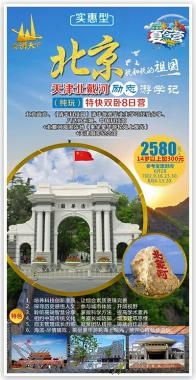 北京故宮、(清華科技園)、(清華優(yōu)秀畢業(yè)生學習經驗分享)、八達嶺長城、中國科技館+北戴河海濱浴場(乘坐豪華游輪海上觀光)+天津周鄧紀念館8日營 特色:1.培養(yǎng)科技創(chuàng)新潛質,讓綜合素質更臻完善。 2.探尋歷史感悟人文,參與城市體驗,開闊視野。 3.聆聽高端智慧分享,掌握科學方法,提高學術素養(yǎng)。 4.相約中國傳統(tǒng)文化,考察長城防御,增添建筑思維。 5.自主管理成長歷練,凝聚團隊精神,鑄就合作品質。 6.海濱-盡情嬉戲,乘坐豪華游輪海上觀光,放開心扉暢快游玩。 夏令營贈送:營服、營帽、旅游胸牌、當地每天一瓶礦泉水、集體照一張、陪同人員! D1:成都西—北京西 。夯疖嚿 成都西乘火車T8次08:10分硬臥(途經:德陽、綿陽、江油、廣元)。在夏令營領隊人員的帶領下沿途欣賞中華山水美景,一路歡歌笑語,一路溫馨平安,奔向偉大祖國首都——北京。 D2:北京 。罕本/周邊 12:36 北京西站接站; 13:15 乘車出發(fā),前往天安門廣場; 14:00 游覽天安門廣場(約1小時),這是世界上最大的城市廣場,也是社會主義新中國的象征。 15:00 參觀故宮博物院(約2小時)。故宮是明、清兩代的皇宮,世界現(xiàn)存最大、最完整的古代宮殿建筑群,凝結著歷史的煙云,記載著歲月的滄桑。在這里,巧奪天工的建筑、燦爛文明的見證足以激起每一個華夏兒女的民族自豪感。游覽太和、中和、保和三大殿和乾清宮、坤寧宮、文華殿、御花園等建筑,探訪神秘的皇宮內院歷史遺跡,感受博大精深的中華文化。 18:30 晚餐19:30乘車返回酒店休息。 D3:北京 住:北京/周邊 07:00 營員起床洗漱 07:30 早餐 08:00 前往軍事博物館 08:30 中國人民革命軍事博物館位于北京天安門西面的長安街延長線上,籌建于1959年,是向國慶10周年獻禮的首都十大建筑之一。是中國唯一的大型綜合性軍事歷史博物館,全館有22個陳列廳、2個陳列廣場。軍博收藏34萬多件文物和藏品。其中國家一級文物1793件,大型武器裝備250余件,藝術品1600余件,對外軍事交往中受贈禮品2551件。其中有銅鎏金弩機、鎮(zhèn)遠艦鐵錨、葉挺指揮刀、三八式步槍和解放軍第一輛坦克等重大歷史價值文物。 10:00 走進中國最杰出的大學之一:清華大學科技園區(qū)(約1小時)。參觀清華?萍紙@區(qū),感受清華文化。政策性閉校外觀。PPT展示,了解清華、北大悠久歷史與校園風光,零距離的接觸清華的優(yōu)秀學子們,感受他們的智慧,感知他們的拼搏,同學們,讓我們用心品味一下大學真正的精髓與文化,把父母口中的"大學"切切實實的感受,清晰一下自己的未來,給自己的人生描繪一幅愿景圖吧,在這里感受中國最高學府的人文魅力。(清華優(yōu)秀畢業(yè)生學習經驗分享)聆聽優(yōu)秀學子交流,(約40分鐘)。 贈送:清華大學博士服照片,清華大學校徽 12:00 午餐 14:30 游覽圓明園通票(約1.5小時)小交通自理,這里是清朝五代皇帝傾心營造的皇家營苑,被世人冠以“萬園之園”、“世界園林的典范”、“東方凡爾賽宮”等諸多美名,身臨其境后才真正了解到圓明園。跟我一起走進圓明園,一起去銘記那段屈辱的歷史! 18:00 晚餐 19:00 返回酒店休息 D4:北京 。罕本/北戴河 03:00 營員起床,洗漱,整理行裝。早餐打包。 05:00 觀看莊嚴的升旗儀式、升旗儀式如遇當日限流,則視為不可抗力因素取消,請周知。 07:30 乘車前往萬里長城。 09:00 前往“燕京八景”之首居庸疊翠,八達嶺長城, “不到長城非好漢”,登上海拔888米最高潮“北八樓”,極目遠眺,腳下的長城依山就勢,蜿蜒起伏,如一條不見首尾的巨龍在綿綿上嶺上翻滾爬到,氣勢磅礴,雄偉壯觀 12:00 午餐。 14:00 參觀【中國科技館】(2小時),科學觀摩體驗—中國科技館。參觀現(xiàn)代科技,古代科技和兒童科技展覽。參與“月球漫步” “模擬飛機”“機器人樂隊”“虛 擬世界”“魔力水車”“航天飛機科學實驗”等豐富有趣,可以增長知識項目,營員動手探索實踐,用雙手感受高科技的無窮魅力,培養(yǎng)科學思想,科學方法和科學精神。 16:00 人文景觀體驗:外觀奧林匹克公園,、鳥巢、水立方外景。是2008年北京奧運會標志性建筑物之一。奧運會后成為北京市民參與體育活動及享受體育娛樂的大型專業(yè)場所,并成為地標性的體育建筑和奧運遺產。 18:30 晚餐。 19:30 返回酒店休息。 D5:北京-北戴河 住:北戴河 05:00起床、洗漱,用早餐 6:00前往北京火車站根據火車時間或者汽車前往北戴河; 11:00抵達北戴河用午餐 12:30參觀【奧林匹克大道公園】(1小時),欣賞奧運之美。鄧亞萍、王軍霞等十多位奧運冠軍曾親臨這里,感受奧運精神,向奧運冠軍學習。營員們可與前奧委會主席薩馬蘭奇塑像合影留念,精美的浮雕、音樂噴泉、單體雕塑、中國奧運冠軍手足印及簽名、運動場、輪滑場和戶外健身設施等,親身體驗更高,更快,更強的精神。 14:00乘坐豪華游輪【王子號或公主號游船海上觀光】(約40分鐘),乘風破浪飽覽渤海風光,遠眺秦皇島港口及沿海風光。 15:00在【海濱浴場自由活動】(約90分鐘,為保證自身安全只限觀景,不可下海游泳),舉行海邊拔河,堆城堡游戲,拋開書本,盡情享受陽光沙灘海風,組織撿拾貝殼,帶給親人和小伙伴來自大海的問候。 D6:北戴河-天津-成都 。夯疖嚿 5:00起床洗漱用早餐 6:00前往天津; 10:00 參觀【周恩來鄧穎超紀念館】,全國愛國主義教育示范基地、全國廉政教育基地和國家一級
